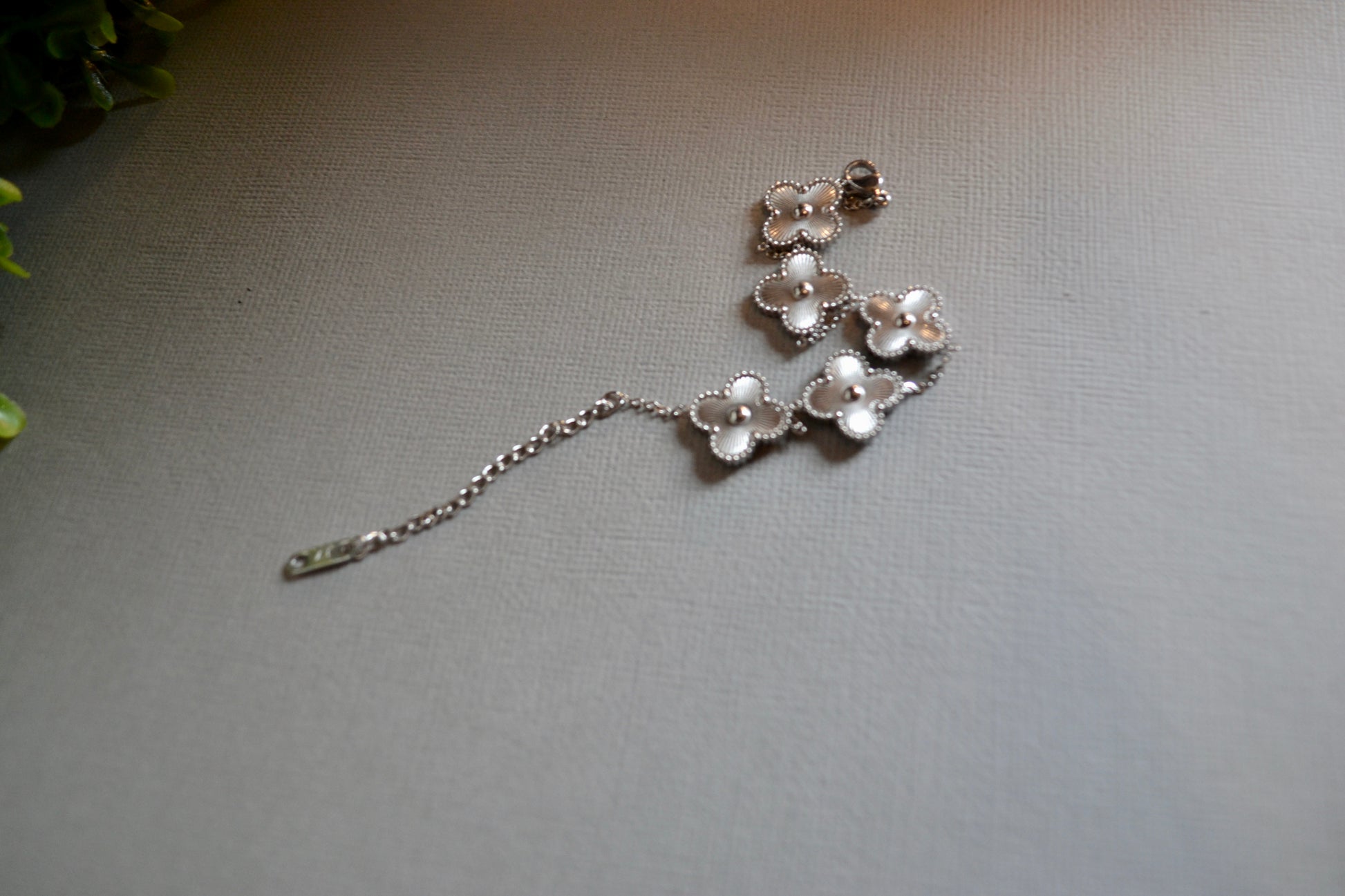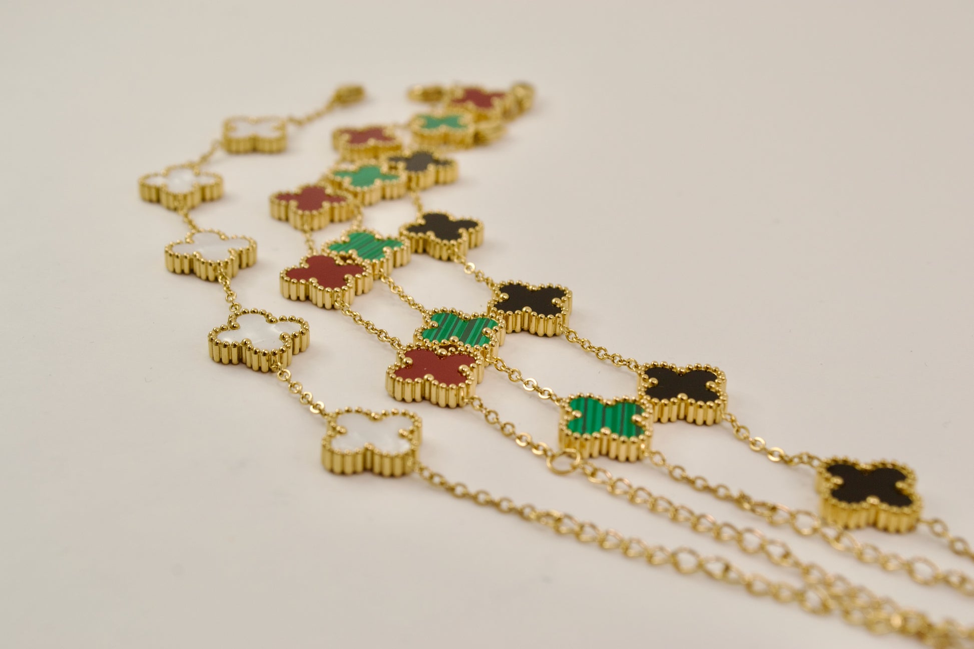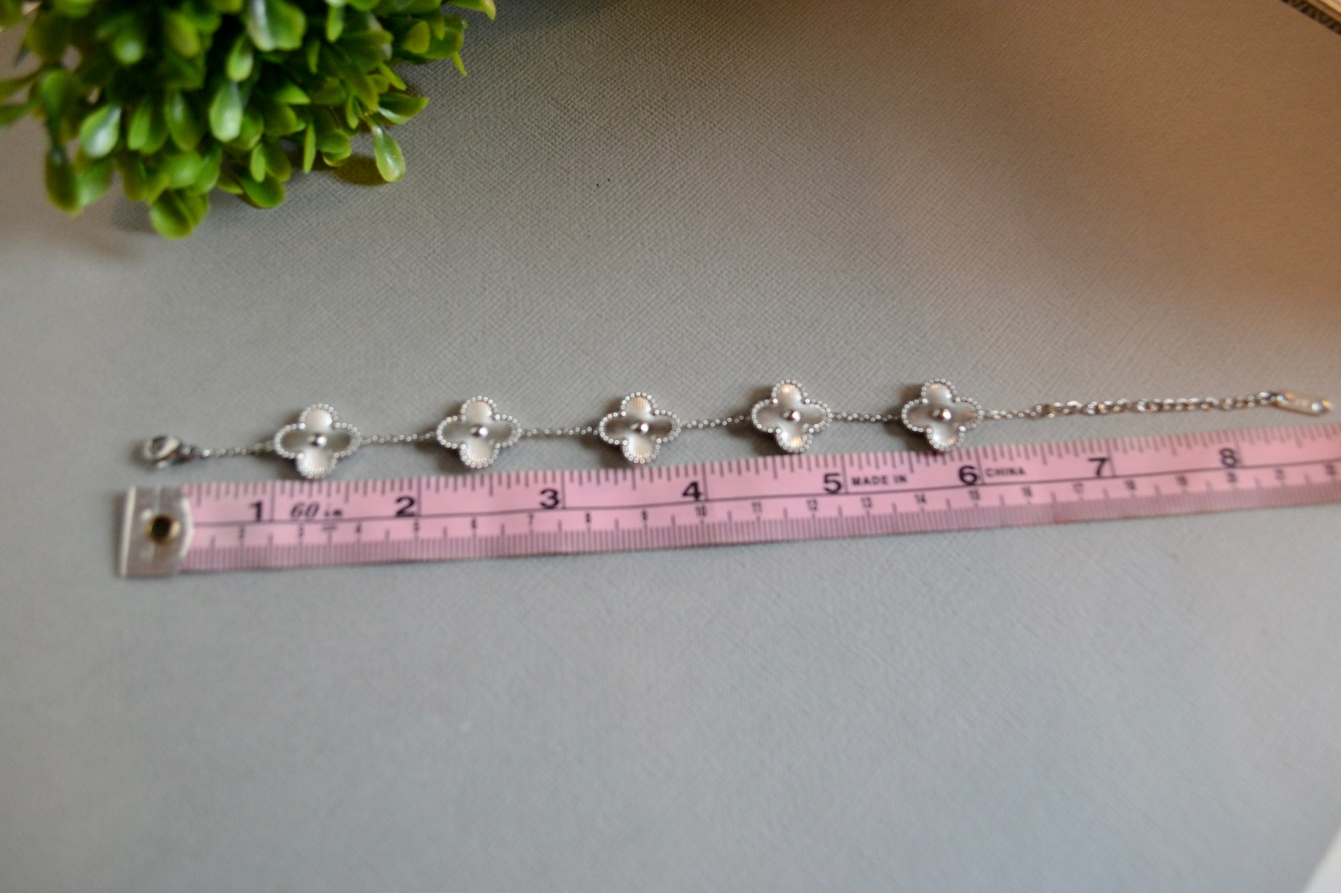 Each clover measures 15mm, making it a prominent and eye-catching feature of the bracelet. The intricate detailing and smooth finish make this piece a true statement of style and grace.