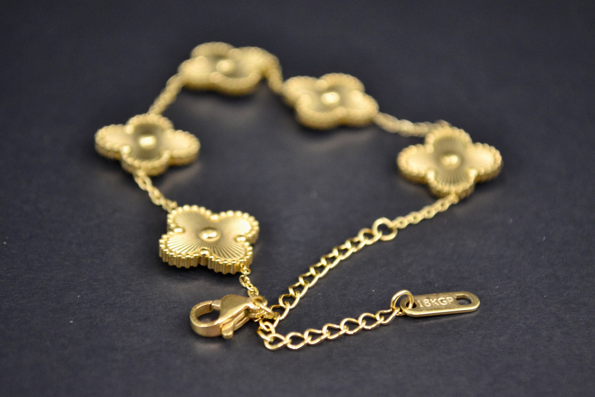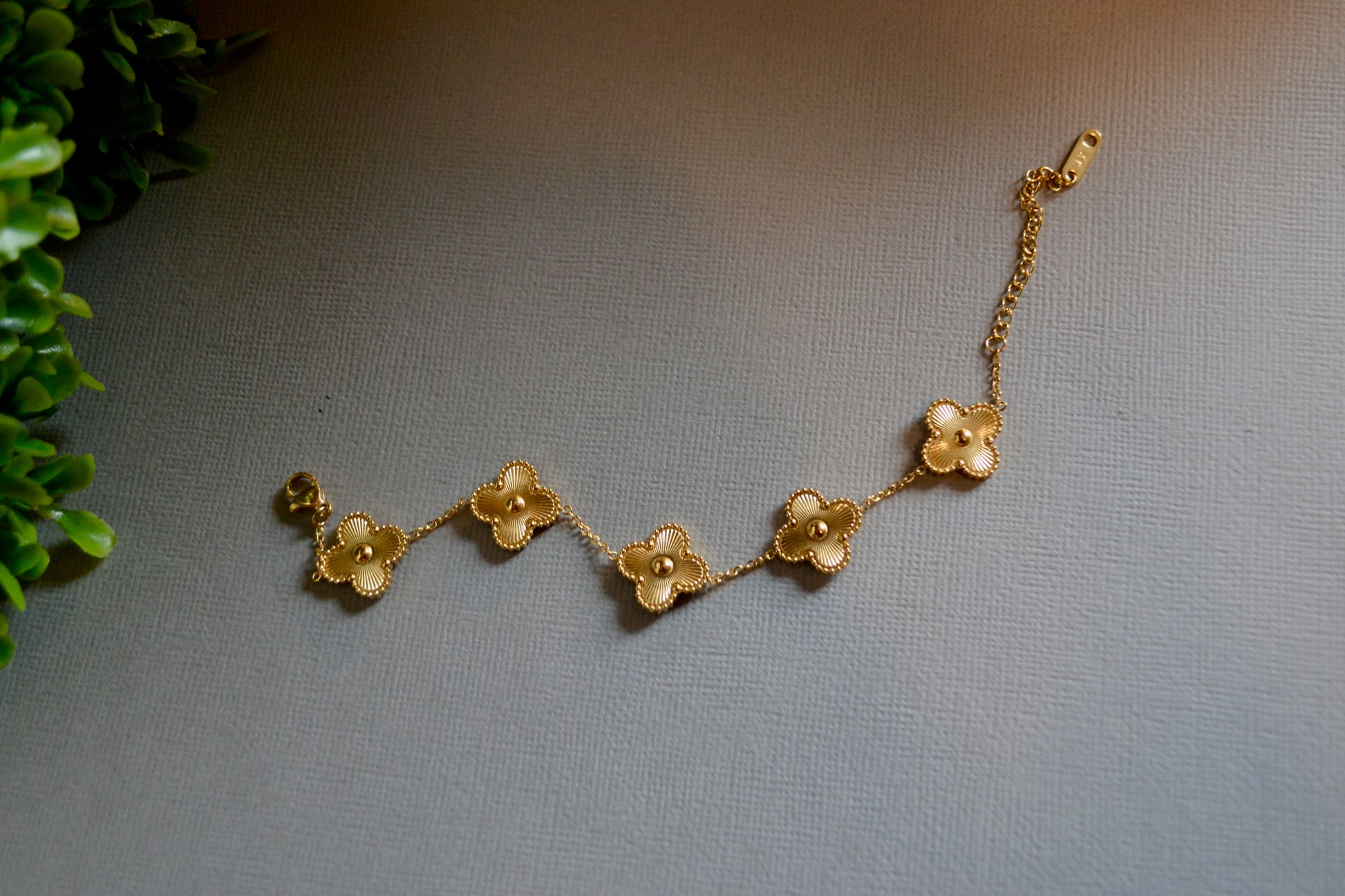 Chic and stylish gold-plated copper clover bracelet, a must-have accessory to elevate your everyday look. This exquisite bracelet is crafted with attention to detail, featuring a stunning clover design that symbolizes luck and prosperity.