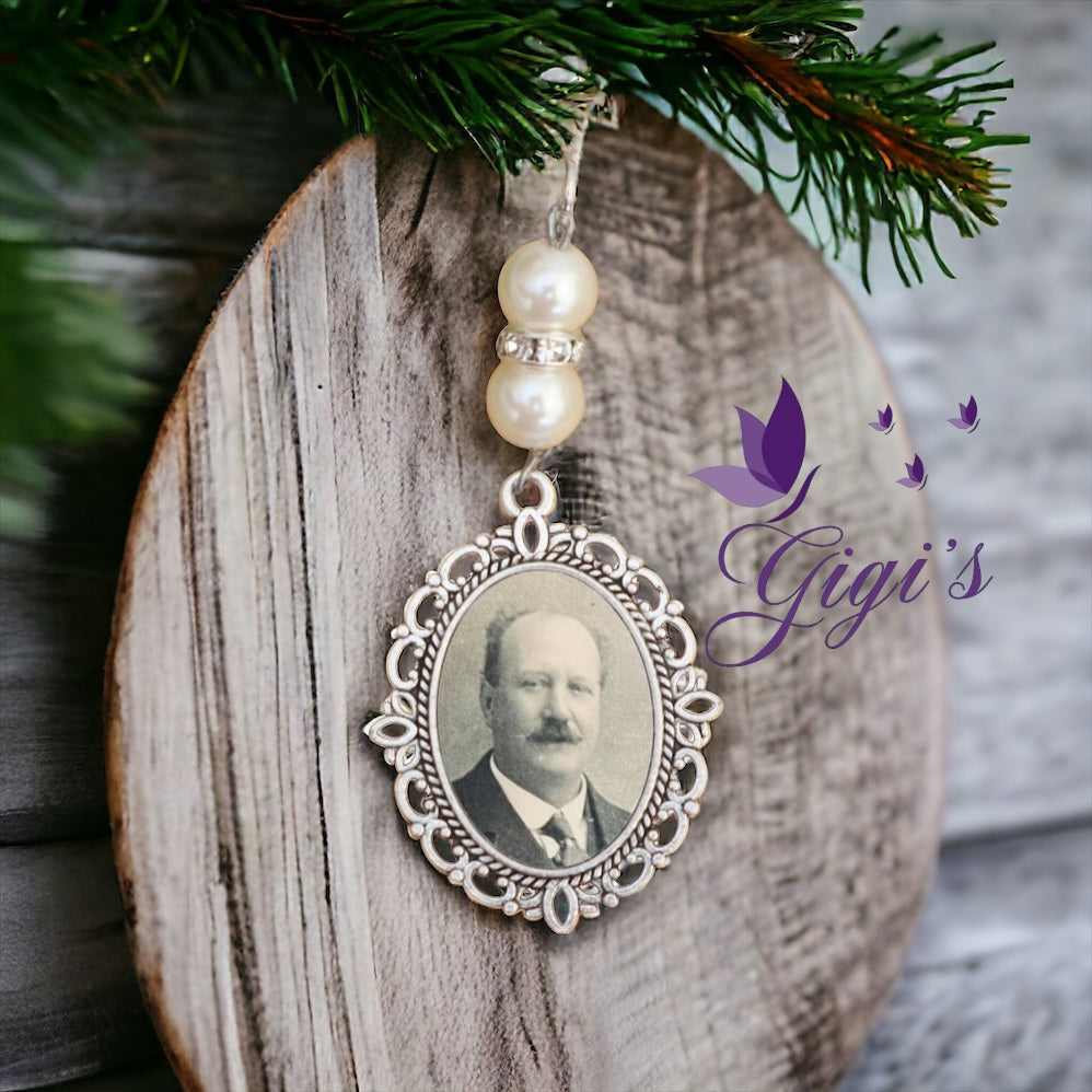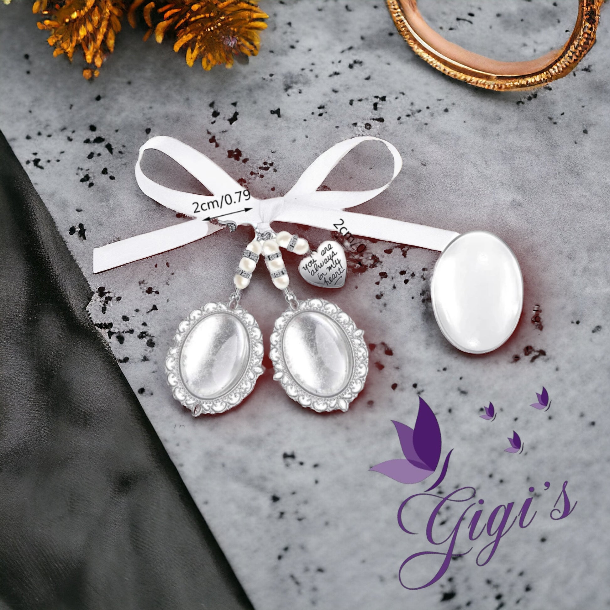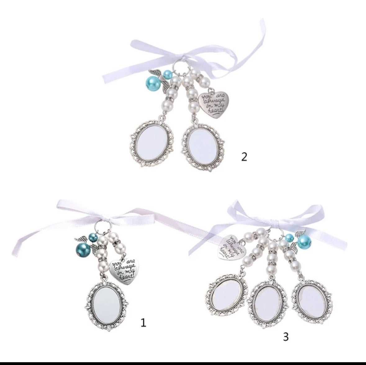 This memorial bridal bouquet charm is a perfect way to include your loved ones on your special day. It can either be tied or pinned onto your bouquet, so their memories are close at hand. Your photo is printed right onto the charm, creating a lasting keepsake. It will arrive to you ready to be used, this is not a DIY kit. Available in single, double and triple charms, it comes with a heart charm, beaded angel charm and white ribbon. Please note,