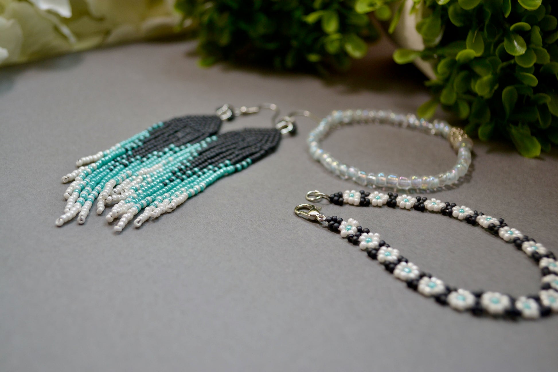 Elevate your style with these vibrant colourful beautiful earrings, to complete your look, wear the coordinating bracelet seed bead daisy flower design. These accessories are perfect to express your unique style. Our handmade jewelry is meticulously crafted to unleash your inner sparkle. Limited stock is available, don't wait.