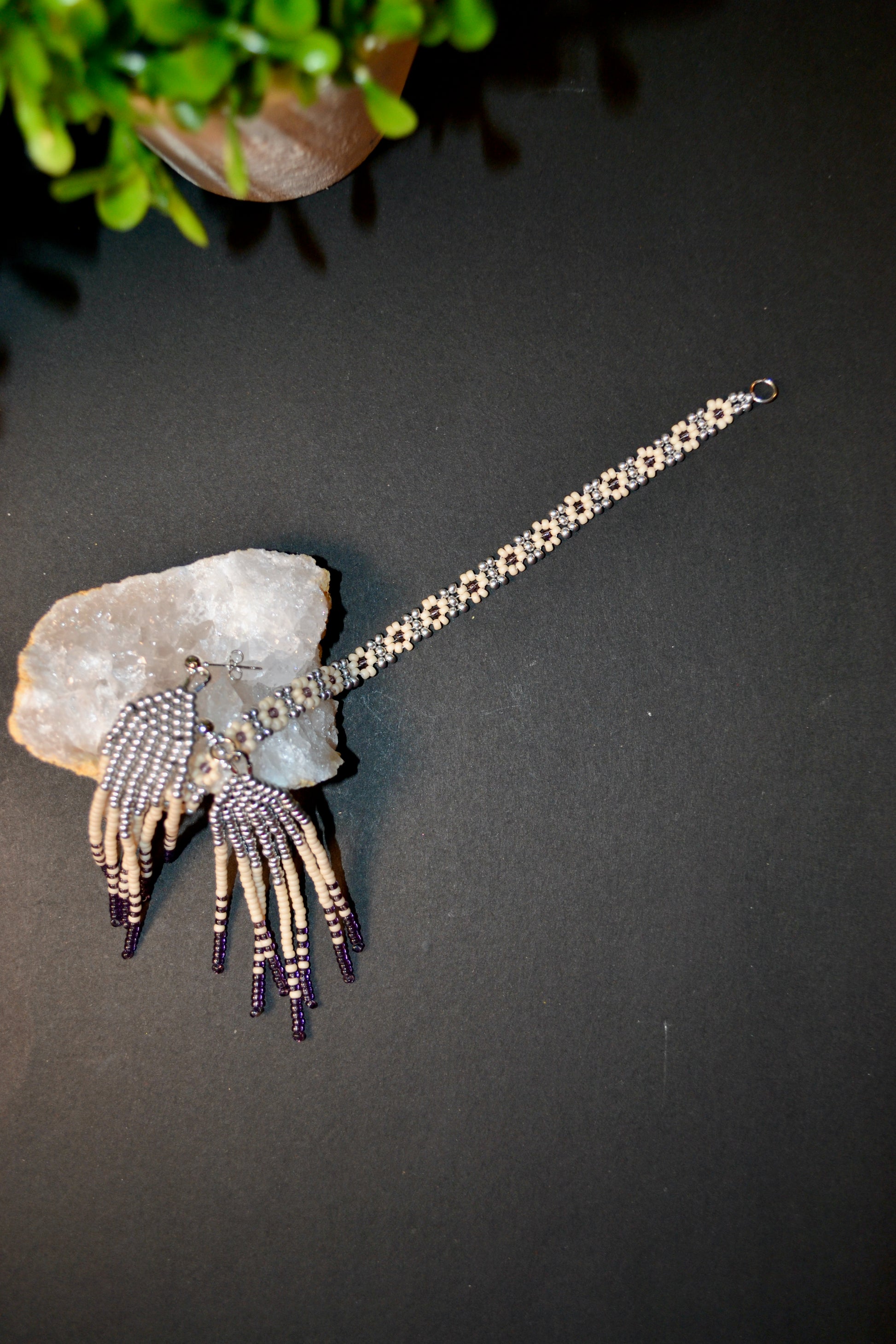 Tassel / Fringe earrings, beaded drop style, statement earrings, daisy seed flower bracelet by Gigi's