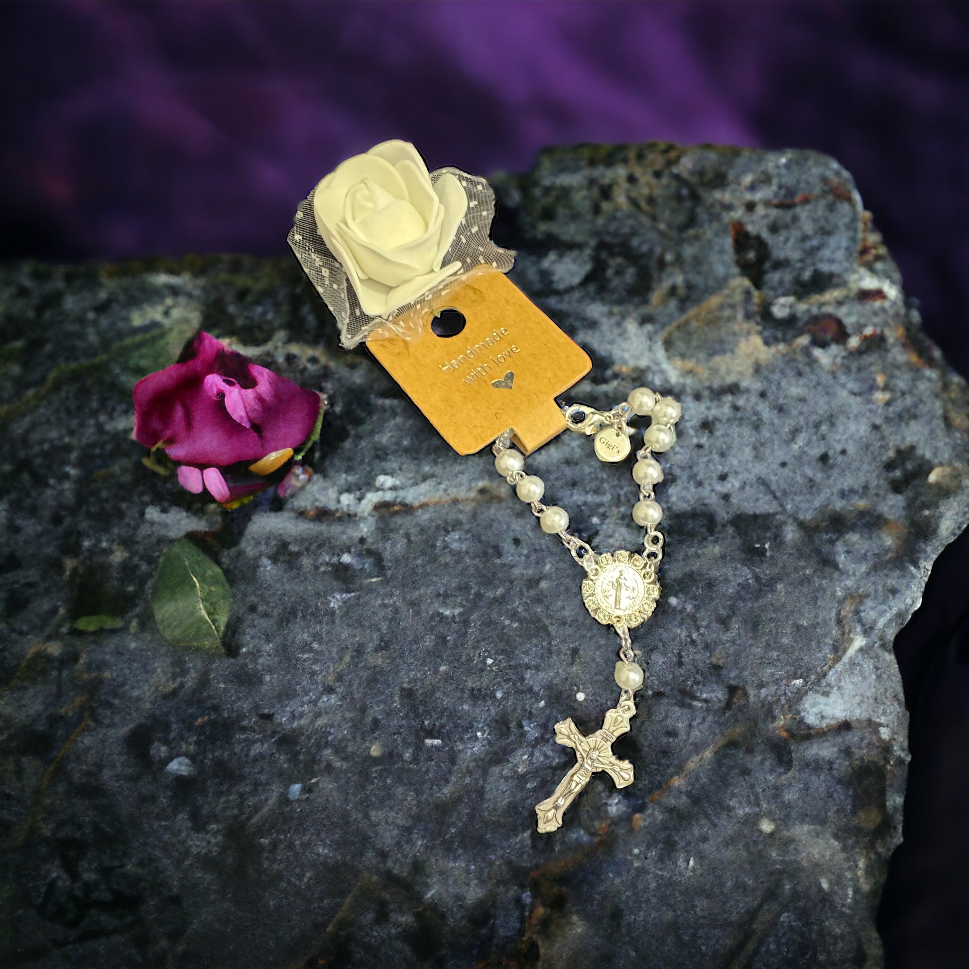 Pearl Rosaries with clasp. Small Size, Great for Baptisms, Communion, Wedding Favours. Pearl decades. Sets of 10, ships with gift box and organza bag.